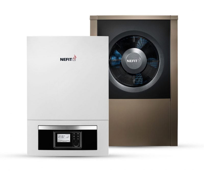 Een volledig elektrische warmtepomp doet alles wat je cv-ketel ook doet: je woning verwarmen én warm water leveren. Zijn energie haalt deze warmtepomp uit de buitenlucht.